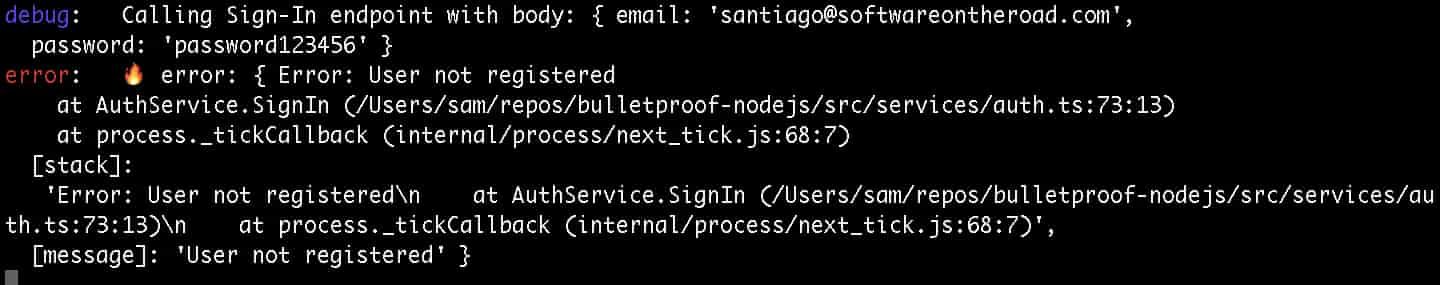 }The controller layer just passes it to the next express middleware, our centralized error handler.