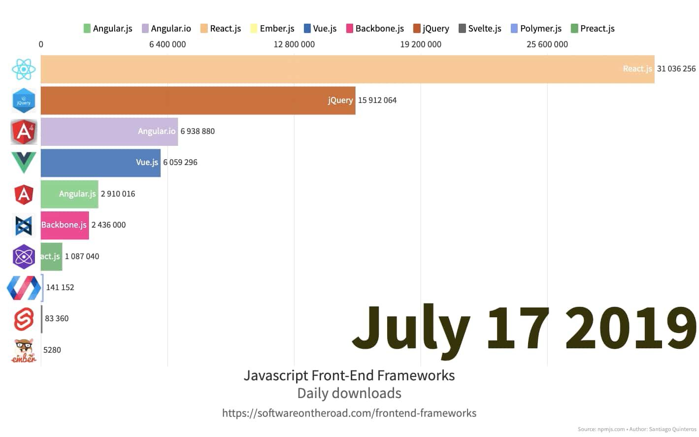 So here is my research on the most daily downloads frameworks from March 2015 to July 2019.