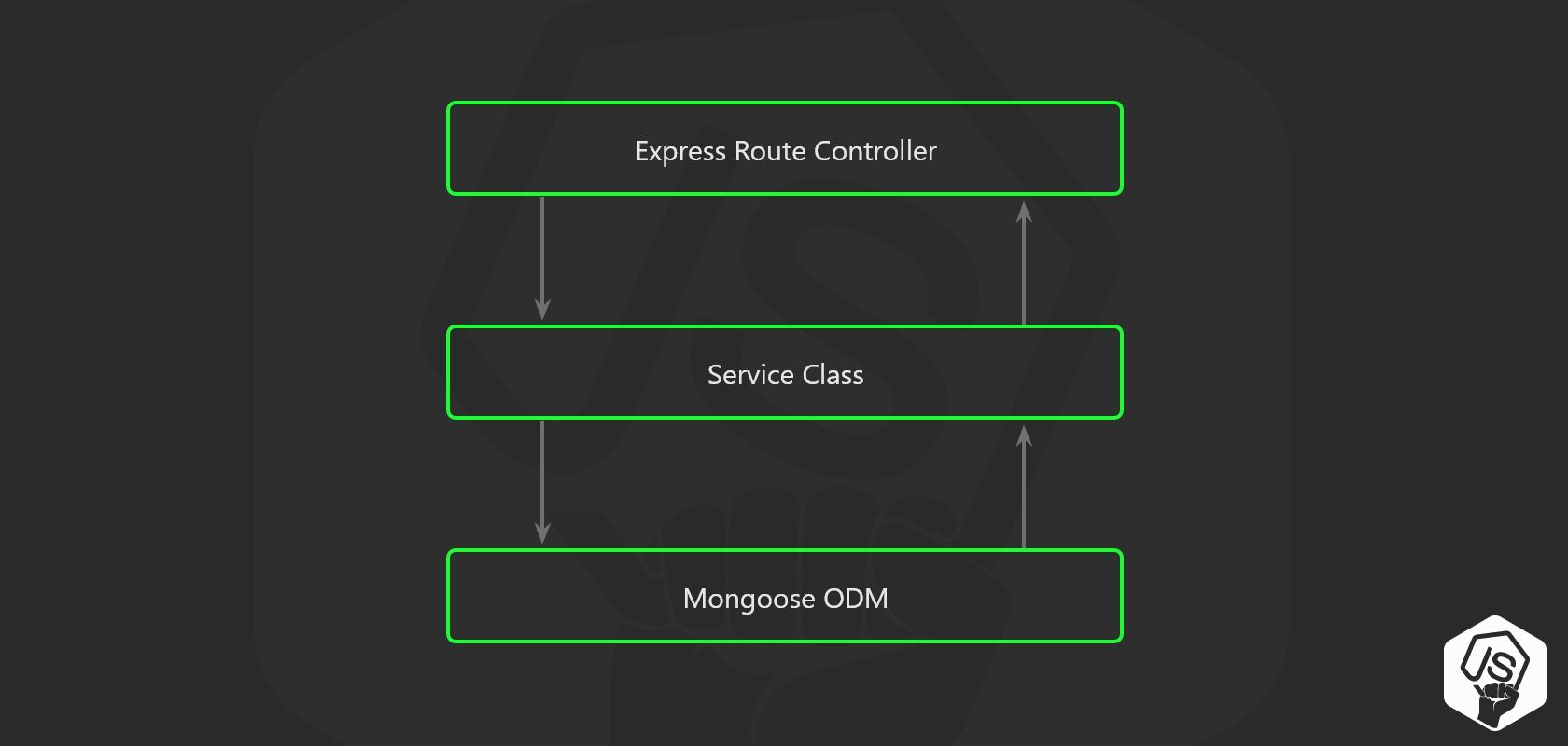 You may be tempted just to use the express.js controllers to store the business logic of your application, but this quickly becomes spaghetti code, as soon as you need to write unit tests,