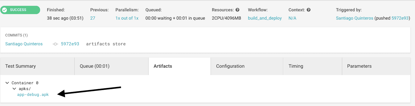 Now the job will generate an APK and save it to the CircleCI Artifacts location, at the time of writing you can save up to 3GB.