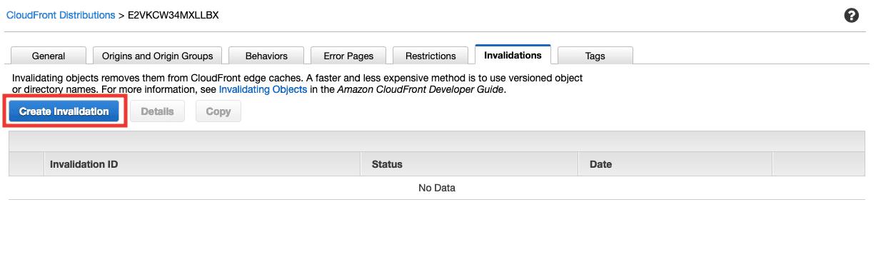 This is very important, every time you push a new version of your website, you have to come here and create a Cache Invalidation.