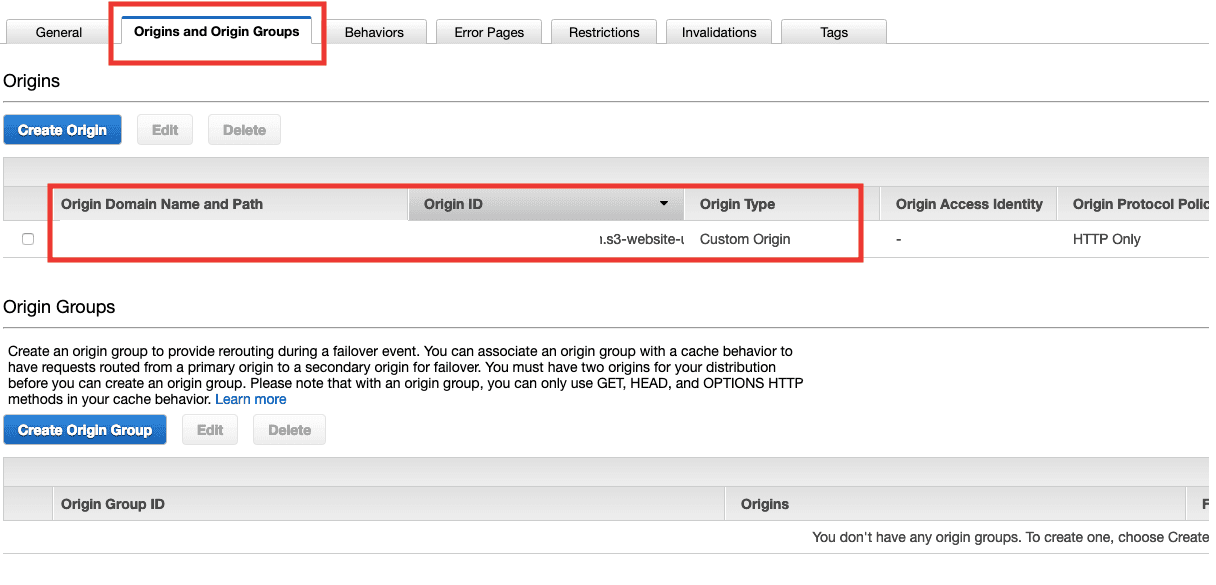 - Just to make sure our origins are well configured, go to Origins tab and check the configurations.